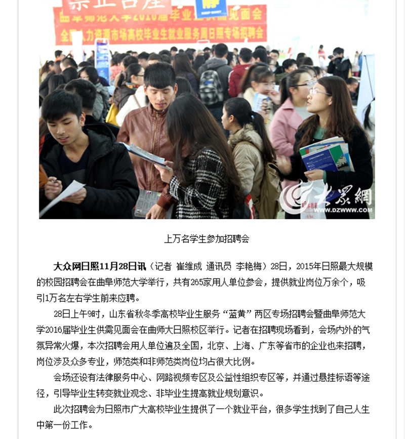 日照电视台、大众网、日照网:开云链接官网校园招聘会提供上万岗位 “北上广”来抢人