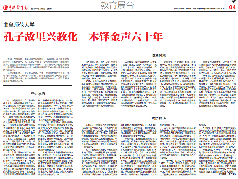 中国教育报:孔子故里兴教化 木铎金声六十年