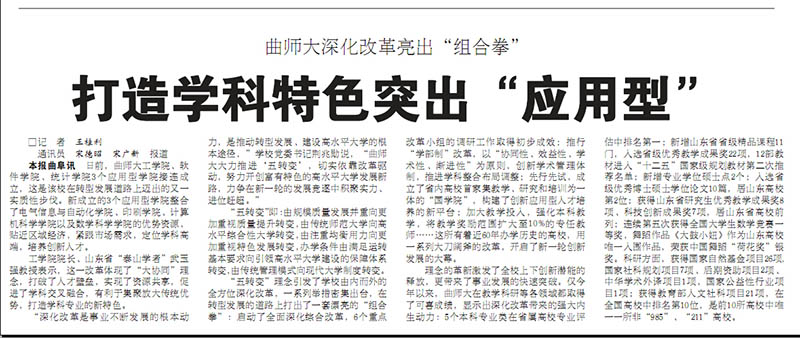 大众日报:曲师大深化改革亮出“组合拳” 打造学科特色突出“应用型”