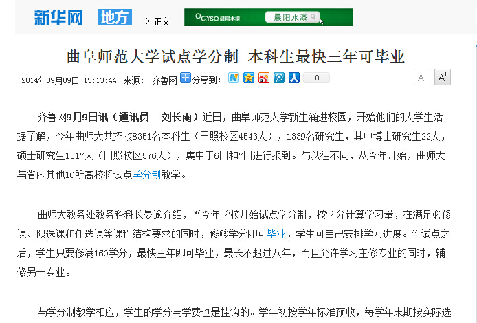 新华网:开云链接官网试点学分制 本科生最快三年可毕业
