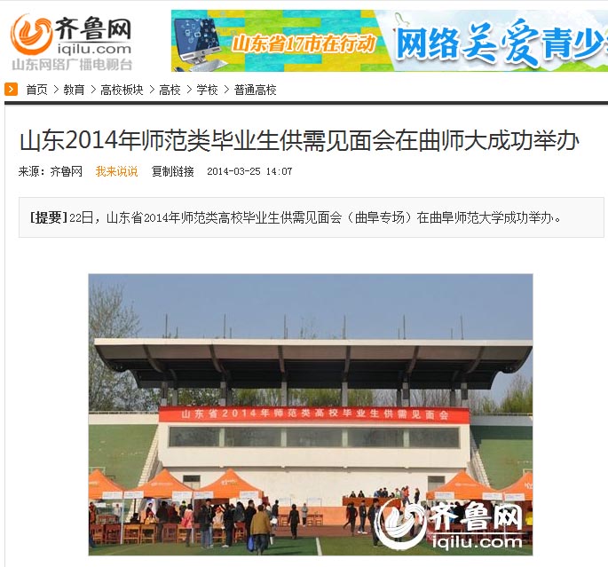 齐鲁网:山东2014年师范类毕业生供需见面会在曲师大成功举办