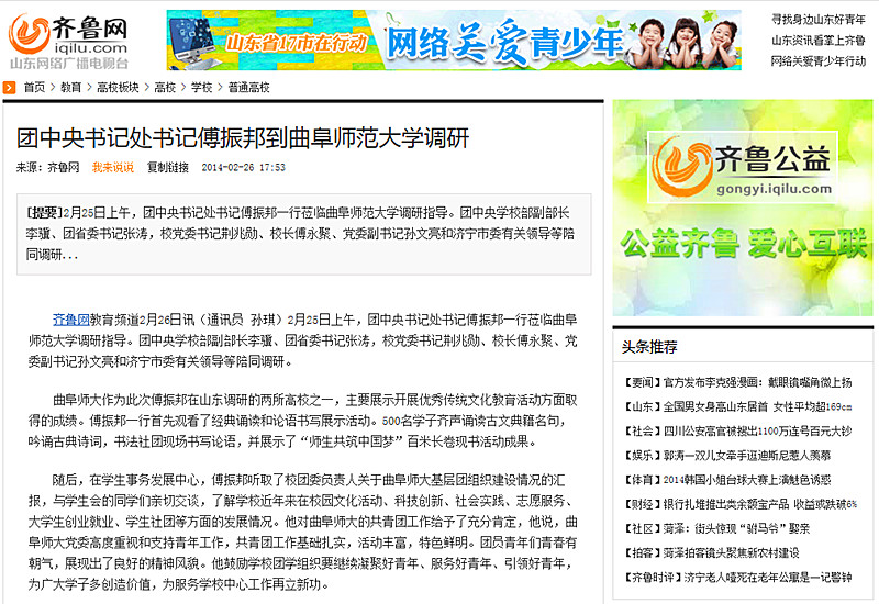 齐鲁网:团中央书记处书记傅振邦到开云链接官网调研