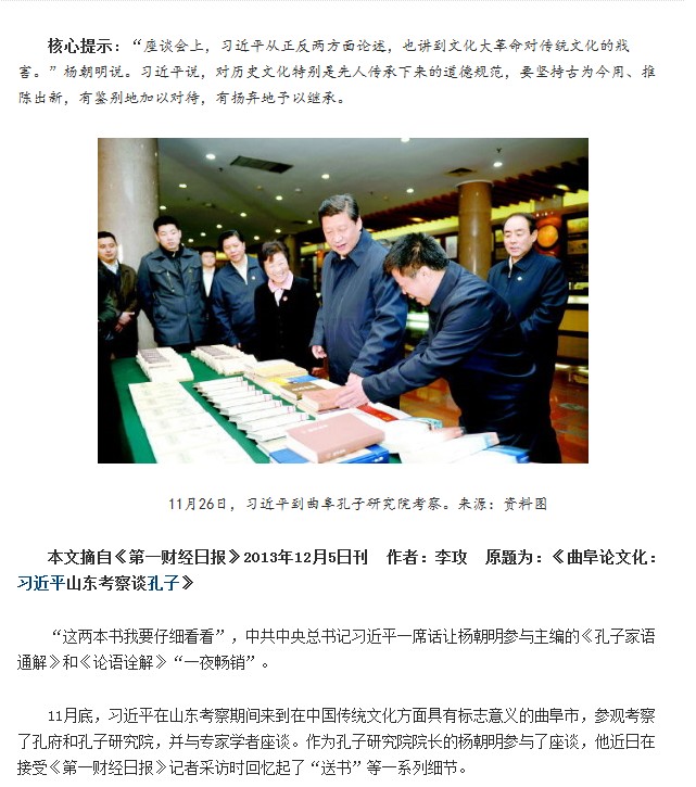 凤凰网:《曲阜论文化:习近平山东考察谈孔子》