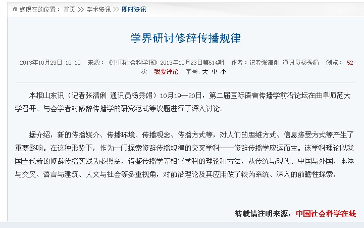 中国社会科学报:学界研讨修辞传播规律