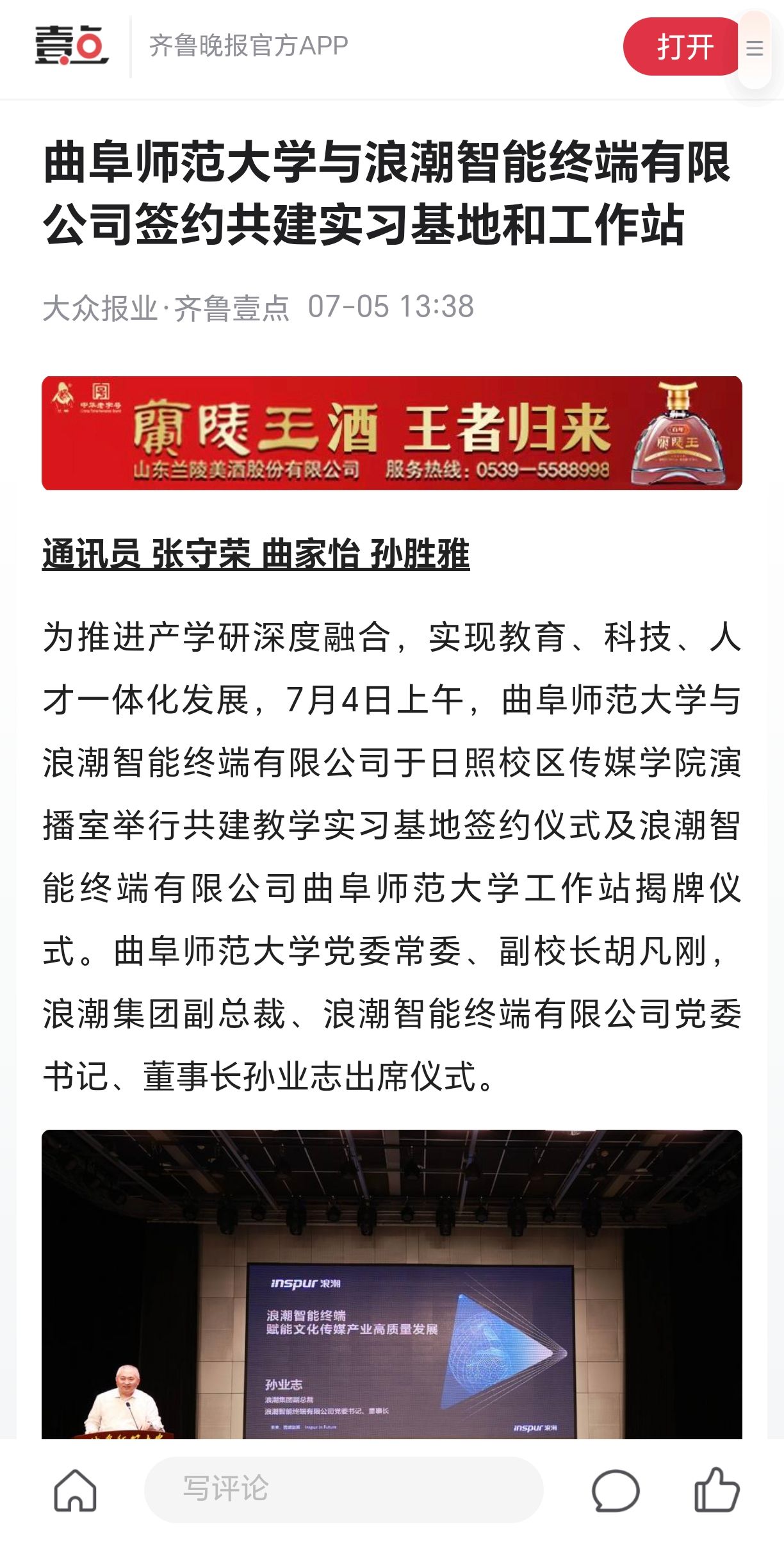 【齐鲁晚报·齐鲁壹点】开云链接官网与浪潮智能终端有限公司签约共建实习基地和工作站