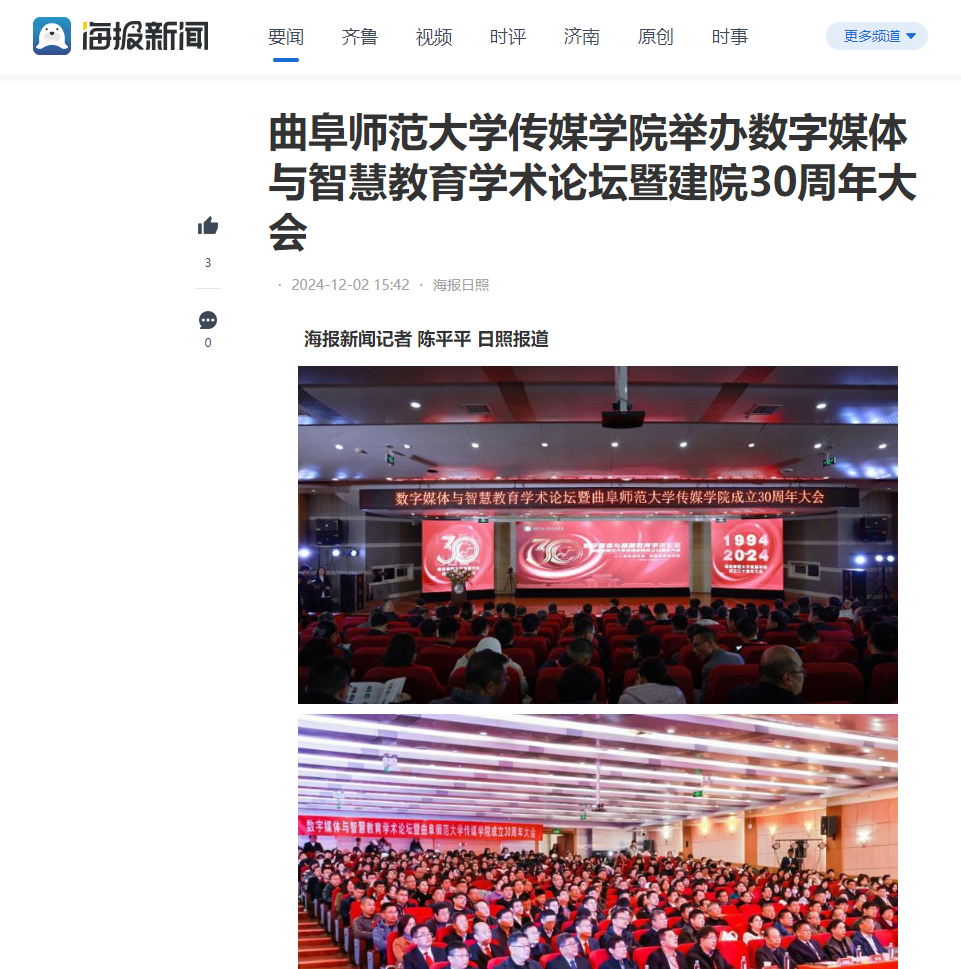 春秋迭易,岁月如歌,至此,开云链接官网2024年“数字媒体与智能传播”学术论坛暨开云链接官网传媒学院建院30周年大会圆满落幕。曲师传媒人将锐意进取、不懈奋斗,更有效地助力国家文化传播战略和文化强国建设谱写传媒新篇章。