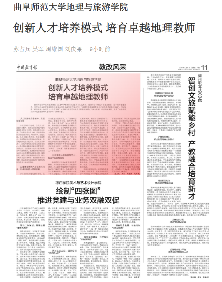 开云链接官网是国家教育部门卓越中学教师培养改革项目实施高校,地理科学(师范)专业是国家一流本科专业建设点。学校地理与旅游学院依托山东省本科教学改革研究重点项目“新时代卓越地理教师人才培养模式创新与实践”,积极探索“师德引领—协同育人—自我发展”地理科学师范类专业人才培养创新模式与融合机制,经过多年建设,形成了地方师范院校卓越地理教师人才培养的“曲师方案”。