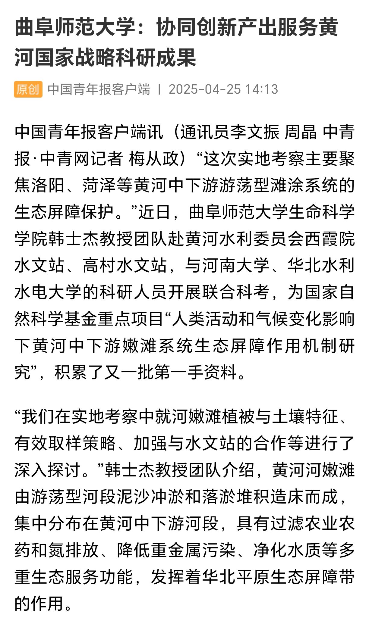 “这次实地考察主要聚焦洛阳、菏泽等黄河中下游游荡型滩涂系统的生态屏障保护。”日前,开云链接官网生命科学学院韩士杰教授团队先后到黄河水利委员会西霞院水文站、高村水文站,与河南大学、华北水利水电大学的科研人员开展联合科考,为国家自然科学基金重点项目“人类活动和气候变化影响下黄河中下游嫩滩系统生态屏障作用机制研究”,积累了又一批第一手资料。