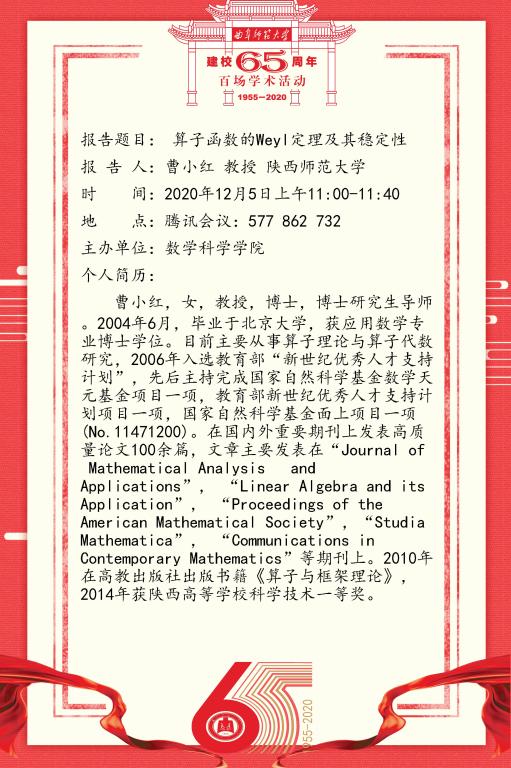建校65周年校庆百场学术活动--陕西师范大学曹小红教授