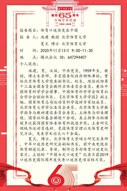 建校65周年百场学术活动-北京体育大学池建教授、夏天博士
