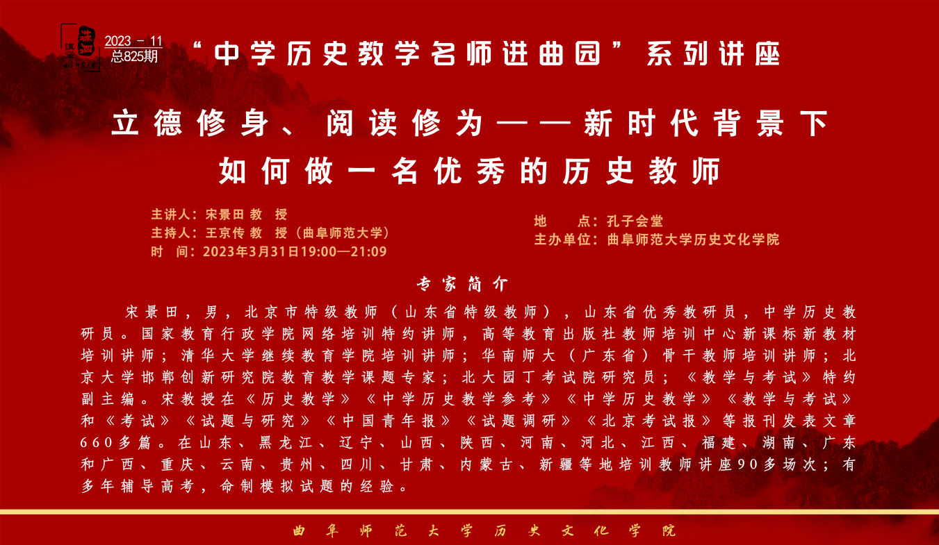 洙泗讲堂预告|宋景田:立德修身、阅读修为——新时代背景下如何做一名优秀的历史教师