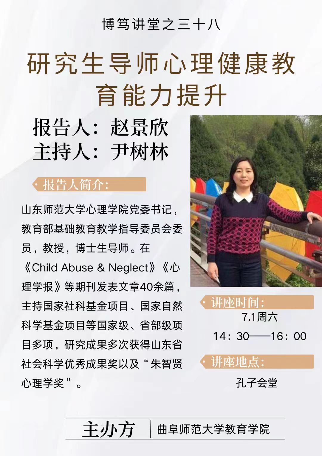 博笃讲堂预告| 赵景欣:研究生导师心理健康教育能力提升