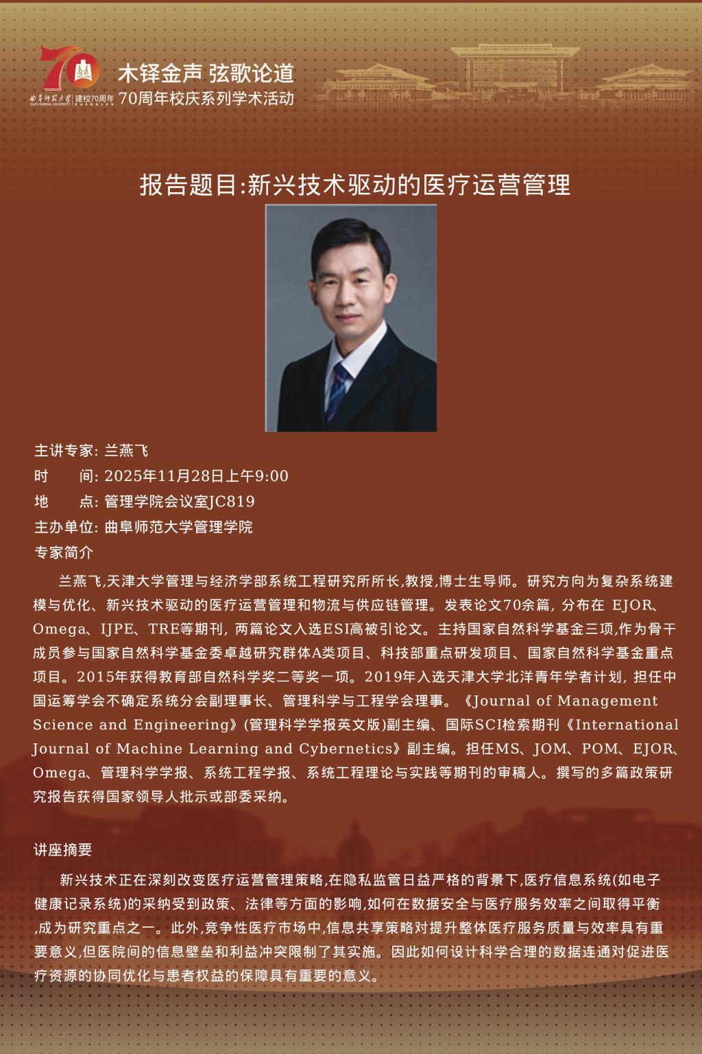 一流学科和交叉研究篇(之五十四)兰燕飞:新兴技术驱动的医疗运营管理
