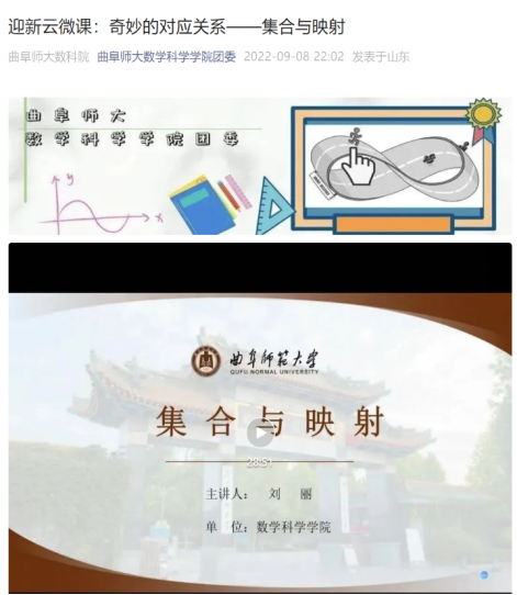 北京师范大学数学科学学院副院长、博士生导师薛庆营教授对这项活动给予了高度评价,“这些云微课精心制作,开放共享。曲阜师大数学科学学院的这种迎新模式,新颖活泼,别具创新,可复制,可推广,值得我们每一位教育工作者学习借鉴。”
