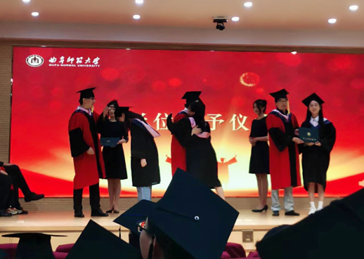 随后,文学院学位评定分委员会委员们为毕业生颁发学位证,依次为每位毕业生同学拨穗,并送上美好的祝愿。