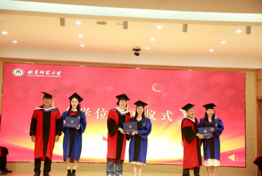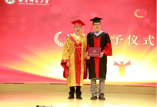 刘大正博士代表全体毕业生发言。他用三个词概括了在曲园的四年时光,“感谢””青春”和“梦想”,“士不可不弘毅,任重而道远。”争取用实际行动做一名合格的后浪,用自己即将实现的梦想为母校争光。