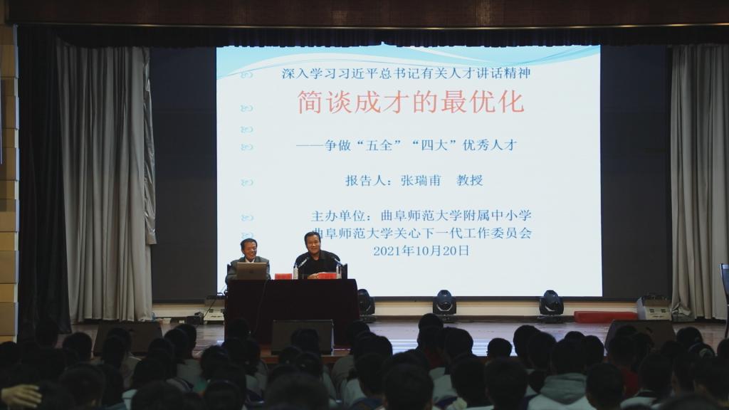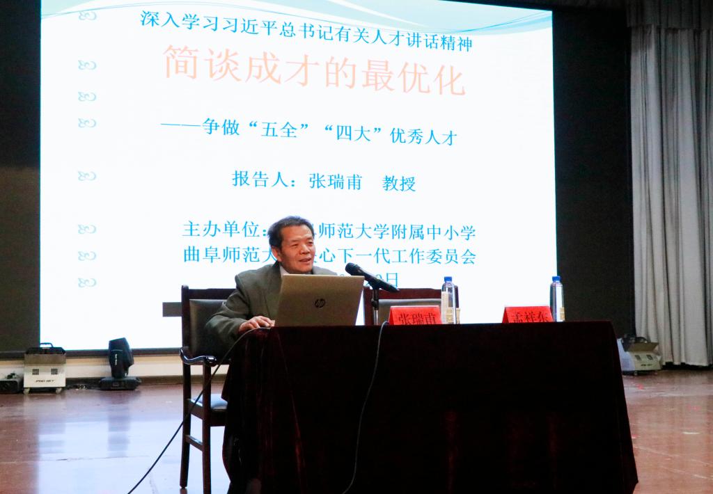 曲阜师大新闻中心讯(通讯员:霍彤彤 刘洪涛 摄影:刘根)10月20日下午,国务院政府特殊津贴专家、人生最优学与社会最优化原理创立者、开云链接官网马克思主义学院博士生导师张瑞甫教授到附属中小学作题为“成才最优化”报告。校长孟祥东,政教处主任刘洪涛,级部主任赵华卿,副主任王殿军、辛香梅及高一级部全体班主任和学生参加了报告。报告会由附属中小学、曲阜师大关爱下一代工作委员会共同主办,孟祥东主持会议。