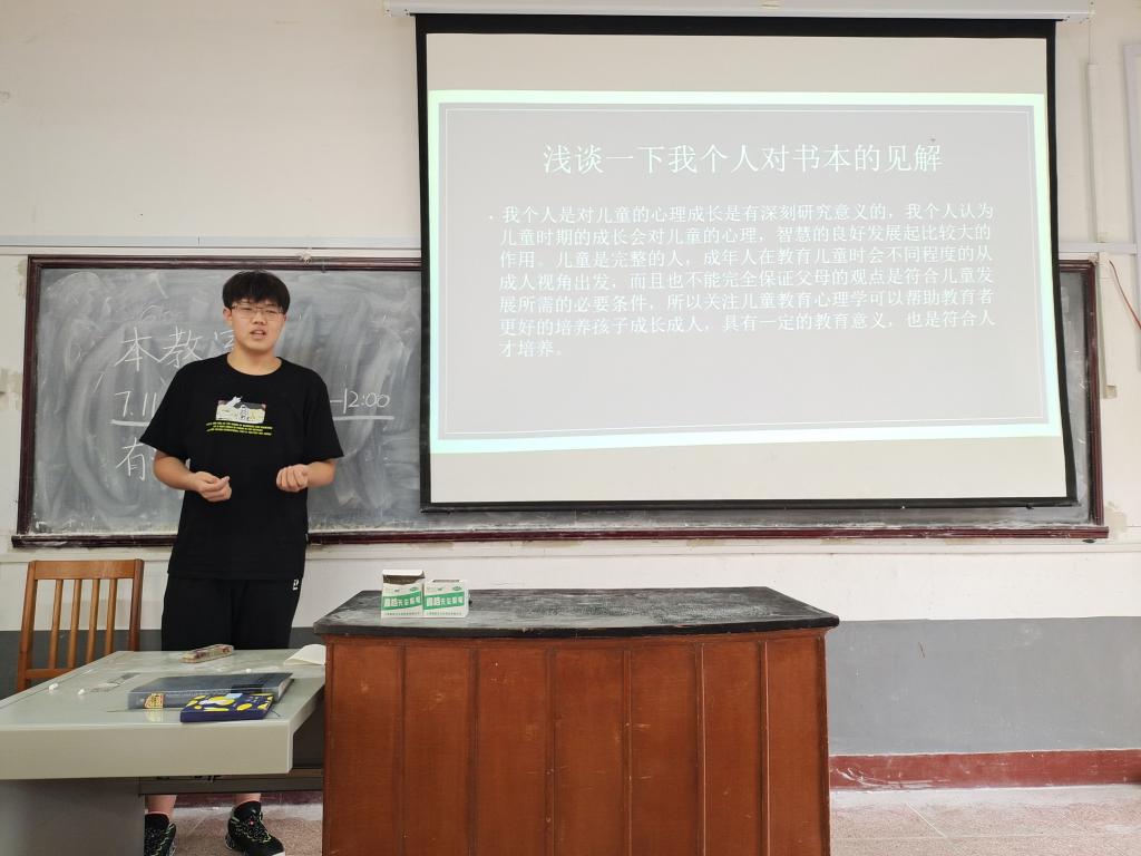 《教育社会学》《如何高效学习》《一颗找回自我的心》《自卑与超越》……一本本书籍被同学信手拈来,倾力推荐。本次分享汇通过让同学们分享“一课一本”推荐的专业书籍,激发了同学们的阅读兴趣,增加了同学们的阅读量,加深了对专业知识的理解,提高了同学们的专业素养,为培养坚守教育初心、牢记教育使命的高素质教师队伍打下坚实基础。