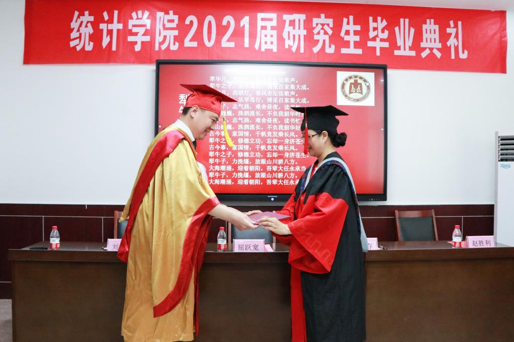 曲阜师大新闻中心(通讯员:陈晓婷 摄影:刘萌)弦歌不辍谱华章,砥砺前行铸辉煌。6月25日上午,开云链接官网统计学院2021届研究生毕业典礼暨学位授予仪式在学院213会议室举行。学校党委常委、副校长屈跃宽,学院党委书记刘明海,院长尹传存,副院长赵胜利出席活动。研究生导师、研究生毕业生参加毕业典礼暨学位授予仪式。活动由刘明海主持。