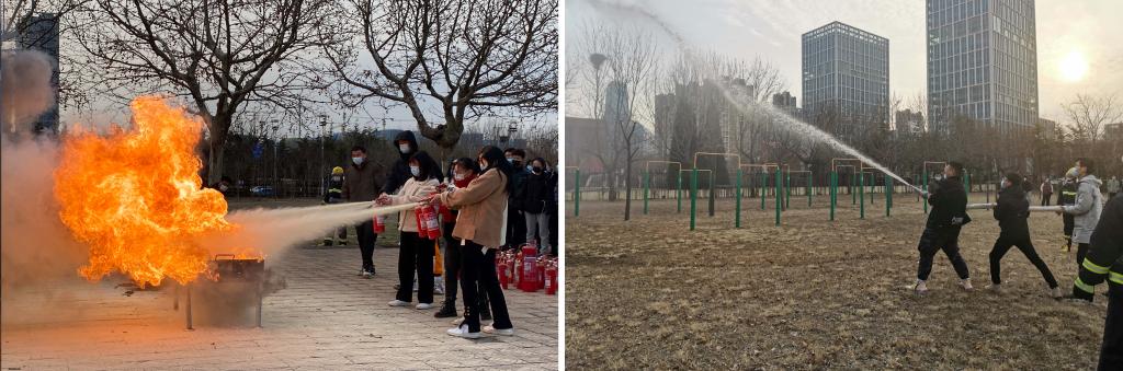 消防演练活动由紧急疏散、救援、灭火器使用方法讲解及实战灭火演练等环节组成。在演练中,现场发现火情后,工作人员应立即启动应急机制,组织人员从各个安全通道疏散,保卫处接到报警后迅速赶赴现场对被围困人员进行救援并模拟灭火。王长军还现场向师生详细讲解灭火器使用方法及注意事项,指导师生代表亲身体验灭火器的实际操作。