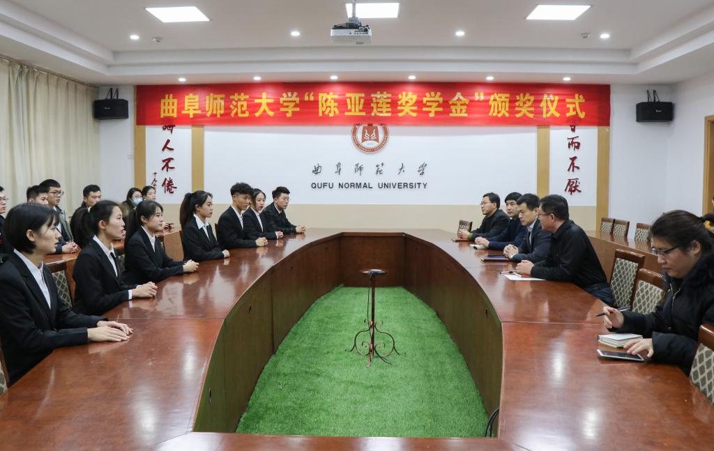 曲阜师大新闻中心讯(通讯员:李霞 摄影:刘萌 王超) 12月28日,我校举行第三届“陈亚莲奖学金”颁奖仪式。党委常委、宣传部部长张隆海出席颁奖仪式,体育科学学院、书法学院、美术学院、音乐学院、孔子文化研究院师生代表参加了活动,仪式由孔子教育基金会秘书长孔宪福主持。