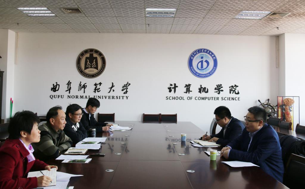 曲阜师大新闻中心讯12月24日,浪潮优派副总经理陈天真、业务经理王旭良到计算机学院考察洽谈校企合作相关工作,与学院领导班子进行了深入的交流,学院党委书记张书东、副院长李光顺、网络计算与安全技术研究所 副所长李凤银、计算机科学与技术系主任雷玉霞参加了座谈。