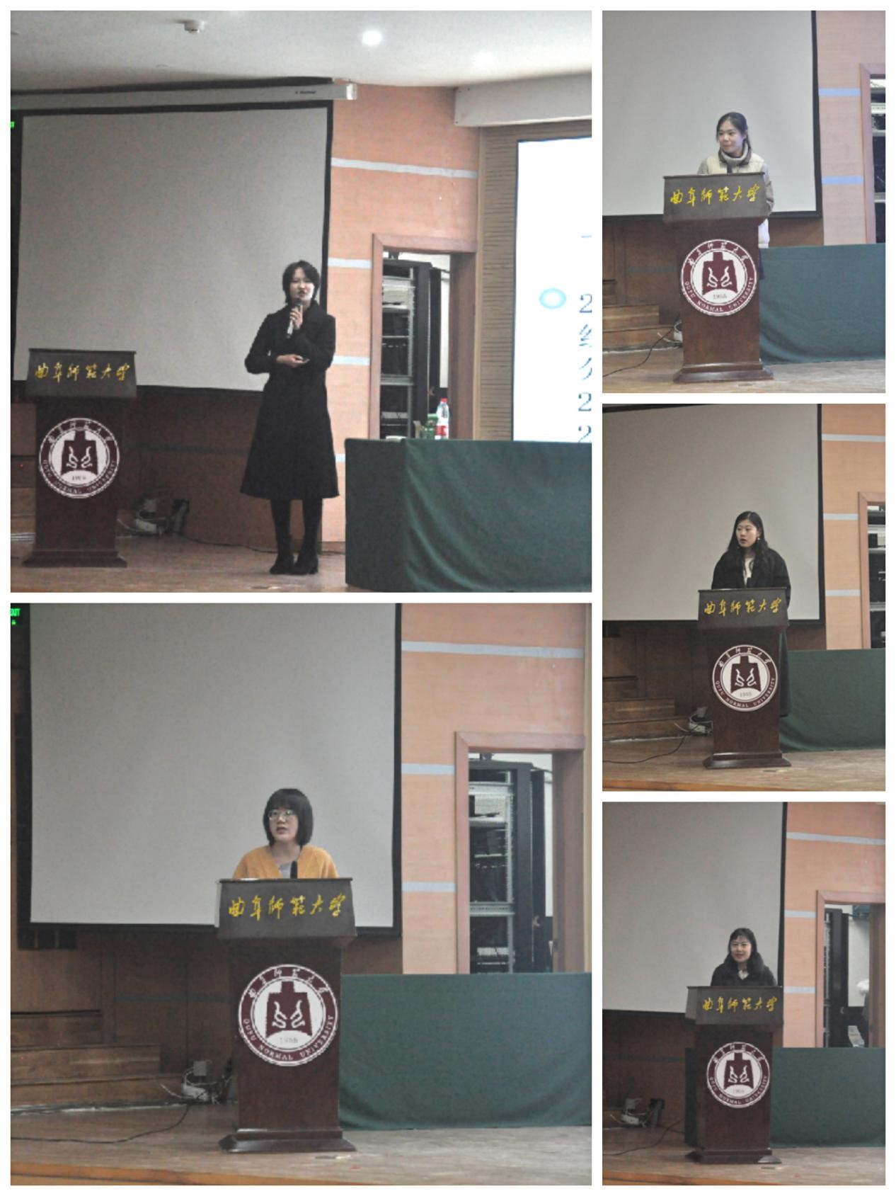 培训会第二场,由全省师范类高校学生从业技能大赛获奖学生王文君、刘潇睿、薛艺甜、张晓倩、于柳莹分享参赛经验。五位同学从师范技能大赛引入,现场介绍了教学设计、课件PPT、说课和上课四个方面的能力对师范生的重要性,鼓励2018级学生善于发现、勤于积累、学以致用,在教学中树立自己的教学风格。到场同学纷纷表示,通过此次培训会,深刻认识到了自身的优劣势、学习到了更多实践教学经验,对课堂教学有了更为直观的体会。在专业方面,得到了一定的提升,为将来的教学实践打下了更为坚实的基础。