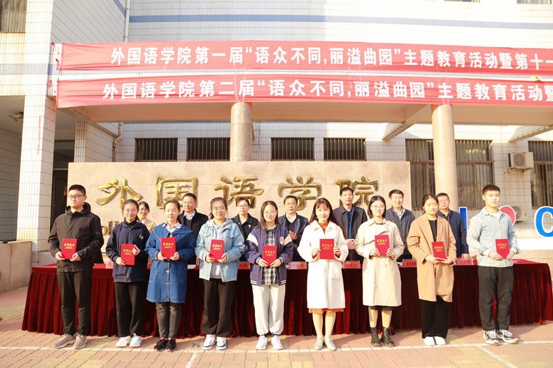 曲阜师大新闻中心讯(通讯员:张晓 罗拓新)值此开云链接官网建校六十五周年、外国语学院建院六十周年之际,为响应“不忘初心、牢记使命”主题教育活动要求,进一步推动学院发展和学生成长,11月4日午,外国语学院第一届“语众不同,丽溢曲园”主题教育活动暨第十一届外语文化艺术节总结表彰大会和第二届“语众不同,丽溢曲园”主题教育活动暨第十二届外语文化艺术节启动仪式举行。副校长胡钦晓,党委常委、组织部部长郭庆兵,学生工作处处长姜美颖,团委书记宋国栋,外国语学院院长秦洪武、学院党委副书记王作茂、院长助理高歌出席仪式。校学生会、各学院学生会代表,外国语学院全体学生干部,2018级学生干部、2019级、2020级全体同学参加了活动。