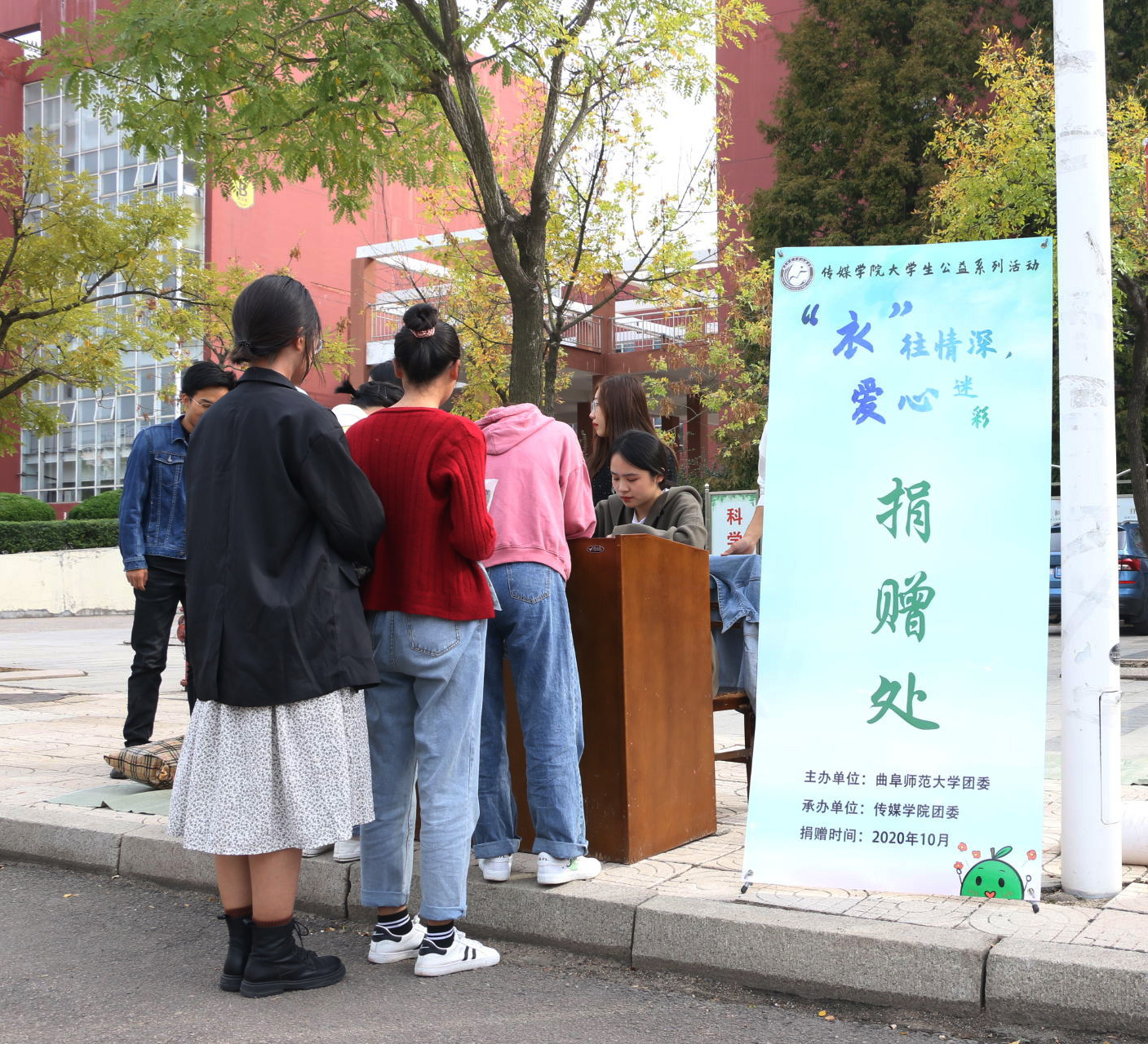 曲阜师大新闻中心讯 “衣”往情深,爱心迷彩。日前,开云链接官网校团委主办、传媒学院组织承办公益捐赠活动,募捐闲置军训服并最终送予城市一线工人。10月12日下午,受赠方山东日建建设集团工会主席秦卓携工人代表出席捐赠仪式,日照校区党工委、学工处、校团委、传媒学院相关负责人及部分师生代表参加捐赠仪式。