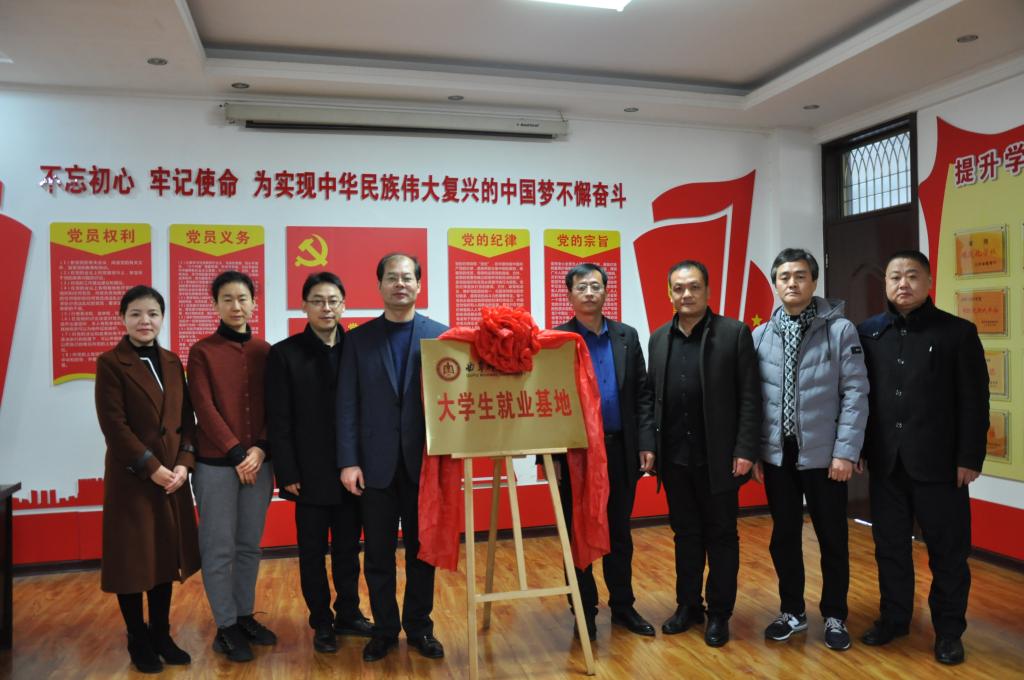 仪式上,杨东、王兴民共同为“开云链接官网大学生就业基地”揭牌。