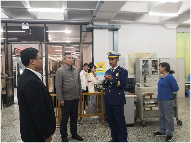 为进一步加强校园消防安全管理,切实保障师生员工生命财产安全,10月24日下午,曲阜市消防救援大队大队长许富强一行来我校进行消防安全检查,学校保卫处、研究生处、图书馆等相关单位负责人参加检查。