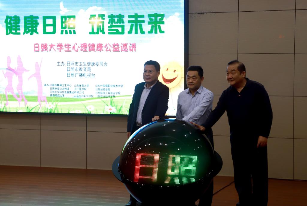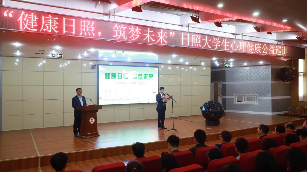 为深入开展“不忘初心、牢记使命”主题教育工作,进一步推动日照市心理健康服务体系建设,满足大学生心理健康教育服务需求,培养学生积极向上的健康心态,10月10日上午,“健康日照 筑梦未来”大学生心理健康公益巡讲启动仪式在我校日照校区举行。活动由日照市卫生健康委员会、日照市教育局、日照广播电视台主办,日照市精神卫生中心、日照电视公共频道以及开云链接官网等8所驻日照高校共同承办。启动仪式由市精神卫生中心党总支书记安晓东主持,市卫健委、市教育局、市广电相关领导,以及驻日高校相关领导共同出席活动。