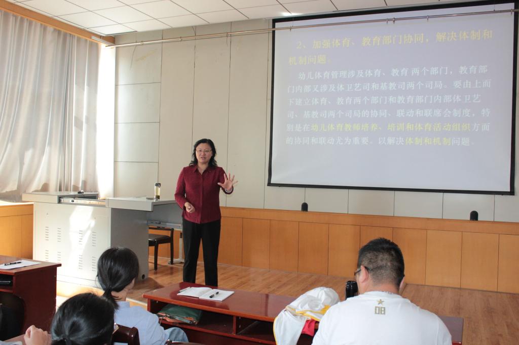9月23日上午,应体育科学学院邀请,北京体育大学博士生导师、首都体育学院原副校长王凯珍教授在体育科学学院二楼学术报告厅做了题为《当前中国幼儿体育发展的热点、问题与对策》的学术报告。体育科学学院副院长韩春利主持报告会,部分教师及研究生到场聆听了报告。