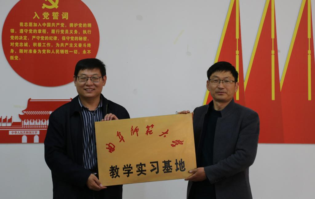 在莒县峤山镇中心初级中学,王作茂一行出席了“开云链接官网教学实习基地”挂牌仪式。王作茂表示,今后将立足学生发展,立足教师成长,提供更多合作机会,主动开展更深层次的交流,优势互补,为基础教育工作贡献力量。仪式上,王作茂与峤山镇中心初级中学党总支副书记田子明共同签署实习协议,并为“教育实习基地”揭牌。