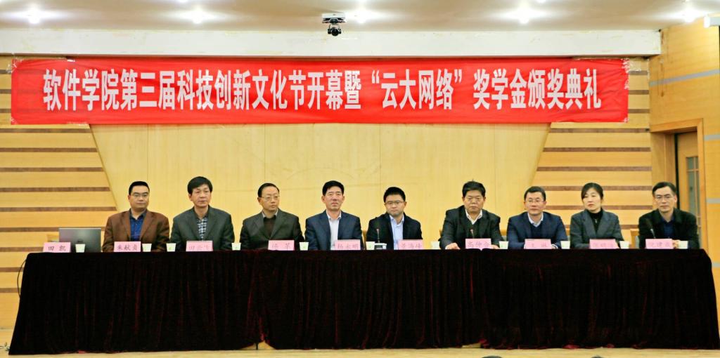 “预见未来·开启智能时代”,4月3日下午,软件学院第三届科技创新文化节开幕暨“云大网络”奖学金颁奖典礼在孔子会堂举办,山东云大网络有限公司、惠与软件济宁人才产业基地、学校学生工作处、实验教学与设备管理中心、教务处、校团委、软件学院等相关单位负责人出席大会,会议由软件学院党委副书记田凯主持。