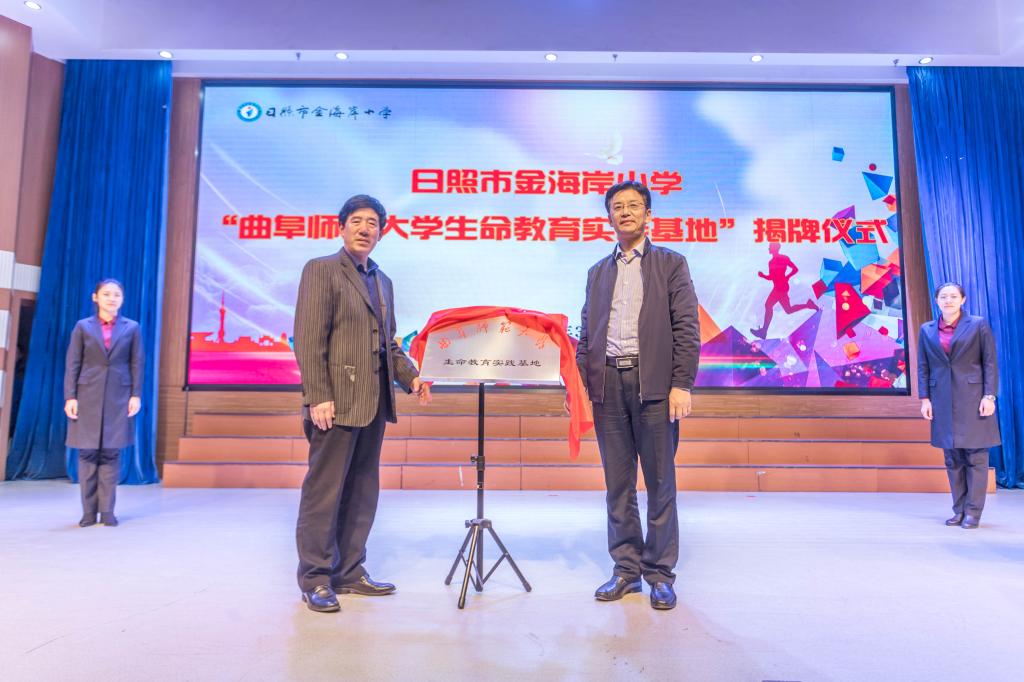 仪式上,赵庆英和学生生命教育研究中心团队负责人卢瑞霞签订开云链接官网与日照市金海岸小学生命教育实践基地合作协议,杨永明和宋百合共同为我校生命教育实践基地揭牌。
