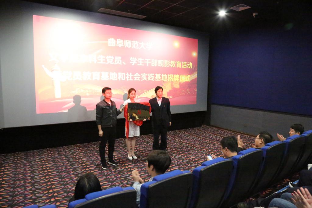 2018年是文学院谋划“十三五”蓝图的关键年,文学院紧紧围绕学校党建工作的总体要求,深入学习贯彻党的十九大精神,围绕立德树人根本任务,找准党建工作与教育教学工作的结合点,为推进学院的改革和发展提供强有力的思想保证和组织保证。3月28日下午,文学院在曲阜顺和大地影视城举行文学院学生党员、学生干部观影教育活动暨党员教育基地、社会实践基地揭牌仪式,并共同观看党性教育片《厉害了我的国》。校团委书记宋国栋、文学院党委书记苏占兵、党委副书记王作茂等出席活动。