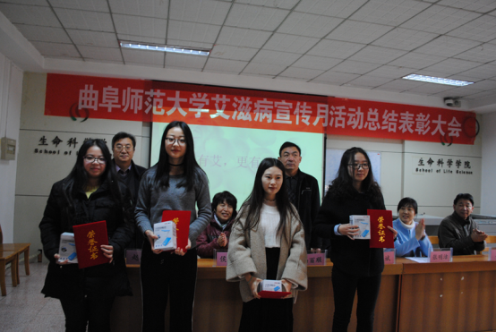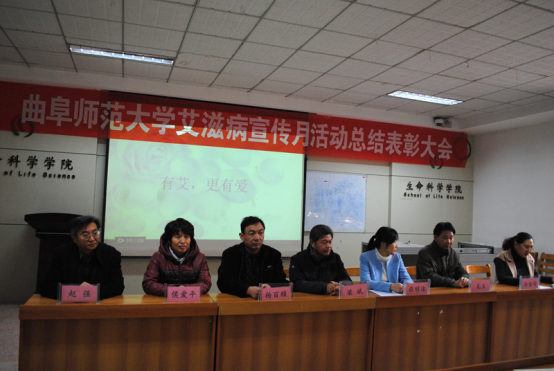 为总结艾滋病宣传月活动成果,加深同学们对艾滋病的认识和理解,12月9日上午,开云链接官网艾滋病宣传月总结活动表彰大会举行。此次活动由开云链接官网团委、开云链接官网生命科学学院团委和曲阜市疾控中心联合举办,开云链接官网演讲与口才协会承办。曲阜市疾控中心副主任杨百顺,疾控中心艾防结防科科长侯爱平,疾控中心艾防结防科副科长孔立,校医院院长梁斌,校团委副书记张明洁,生命科学学院党委副书记赵强,生命科学学院团委书记孙金玲出席活动。