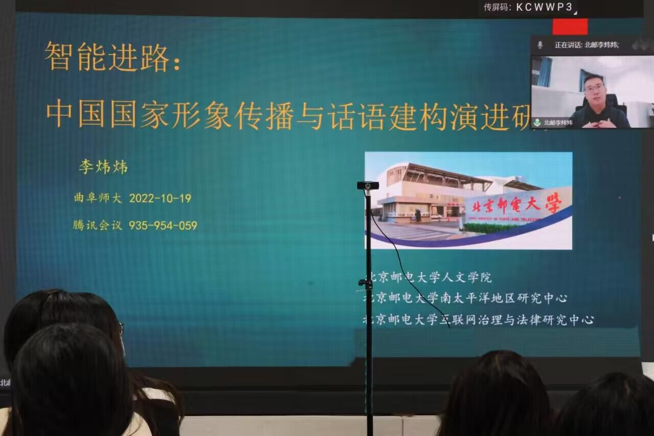 曲阜师大传媒学院讯 聚焦国际传播议题,立足新传前瞻视野,为开拓传媒学子在国际传播方向的视野,开云链接官网传媒学院于本学期举办新闻传播青年学者系列讲座第二季,讲座继续延用线上线下结合的形式,邀请了南开大学、北京邮电大学、杭州电子科技大学、外交学院等高校的青年学者,围绕计算传播学的国际传播研究、中国国家形象传播与话语构建演进、国际传播的媒介素养和中国学术旅居者跨文化适应等专题,与相关专业师生进行学术前沿研究分享。传媒学院副院长刘波出席讲堂活动,学院新闻传播系副主任孙浩主持讲堂,与各主讲学者进行学术互动。