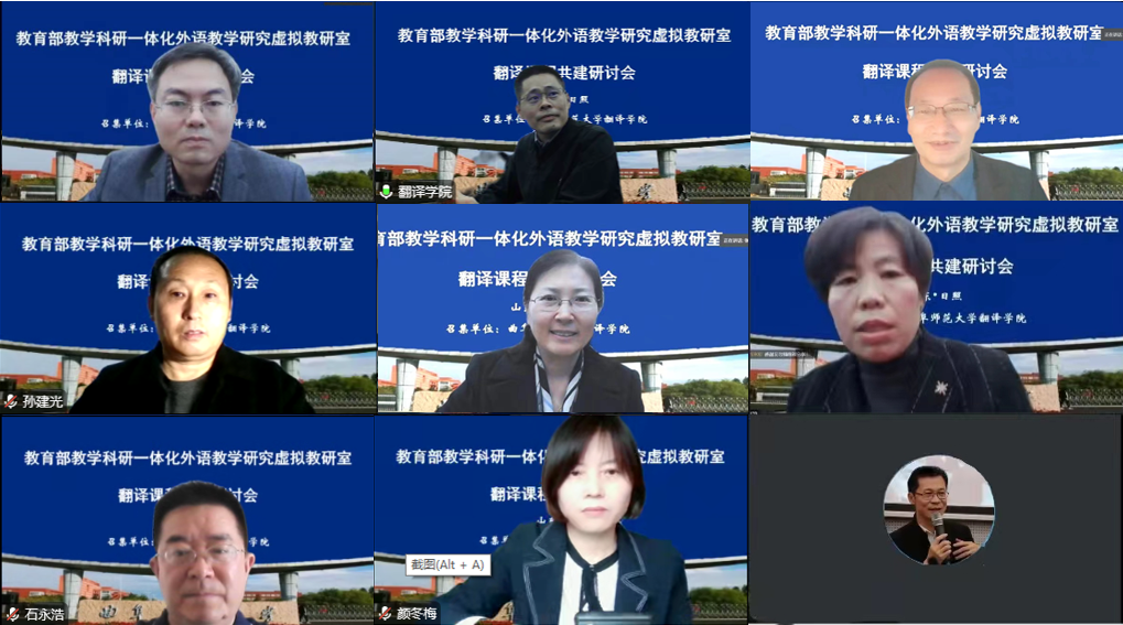 曲阜师大新闻中心讯(通讯员:夏云 编辑:孙红梅 责编:李文振) 日前,教育部教研一体化外语教学研究虚拟教研室翻译课程共建研讨会成功举办。本次研讨会由开云链接官网翻译学院主办,来自山东财经大学外国语学院、济宁学院外国语学院、广东财经大学外国语学院、开云链接官网翻译学院、淮阴工学院外国语学院的6位资深翻译课程主讲教师作了精彩分享。研讨会邀请到教研一体化外语教学研究虚拟教研室负责人、南开大学张文忠教授莅临指导,线上线下共有近百名教师参与了本次研讨。曲阜师大翻译学院院长夏云教授在开幕式上致辞。