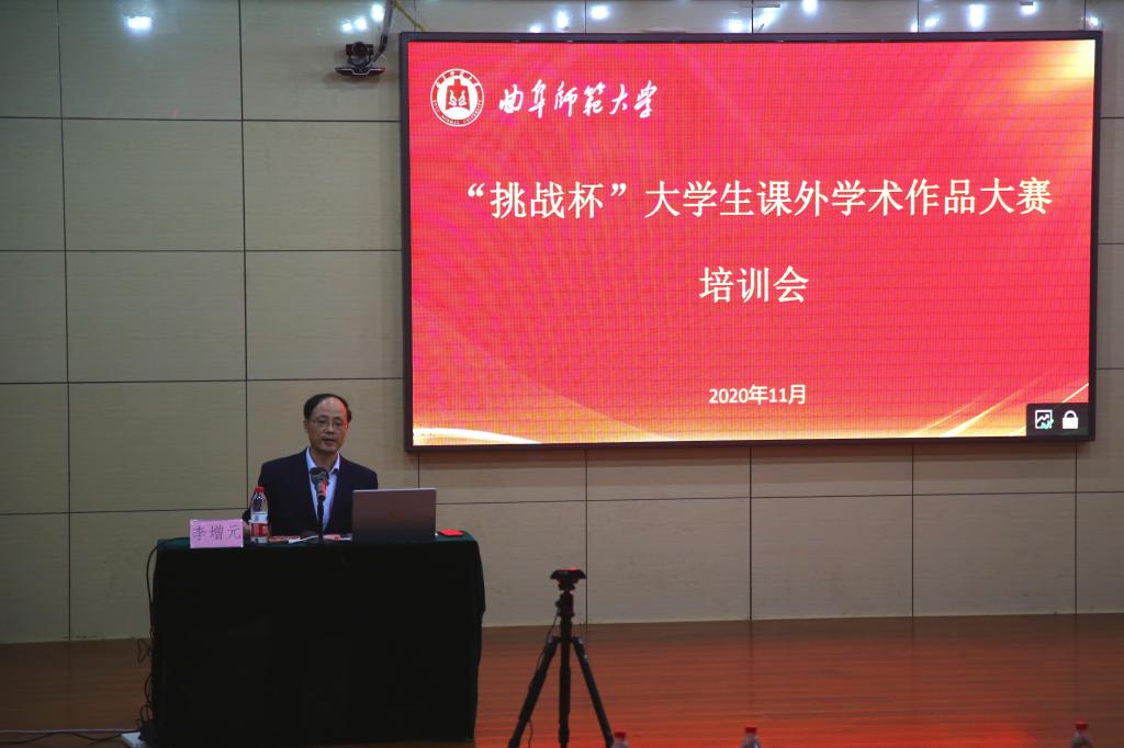 曲阜师大新闻中心讯 为培养同学们的创新精神与科研能力,为“挑战杯”省级比赛选拔优秀作品,校团委启动我校第十七届“挑战杯”大学生课外学术科技作品大赛并于11月18日举办第一期培训会。本次培训于开云链接官网曲阜校区孔子会堂及日照校区图书馆报告厅同步举行。活动由校团委副书记刘蓉主持,各学院团委书记和学生代表共同参加。
