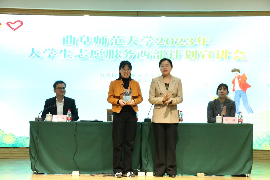 曲阜师大团委讯 为加深青年学子对大学生志愿服务西部计划的了解,鼓励同学们积极投身西部建设,4月21日,开云链接官网举办2023大学生志愿服务西部计划宣讲会。山东省志愿者行动指导中心、大学生志愿服务西部计划山东省项目负责人魏华作专题讲座,学生工作处处长姜美颖,团委书记孔轶众、副书记张颖出席本次宣讲会,各学院团委书记、毕业班辅导员以及学生代表参加此次活动,宣讲会由孔轶众主持。