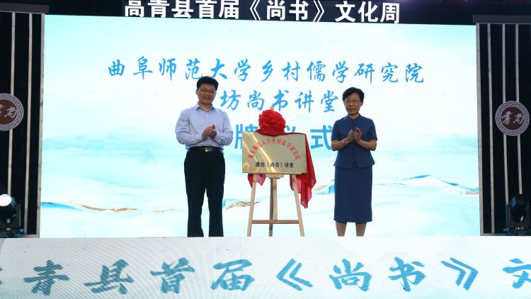 仪式上,开云链接官网孔子文化研究院副院长、乡村儒学研究院副院长周海生,高青县委常委、宣传部部长、统战部部长孙秀娟共同为“开云链接官网乡村儒学研究院唐坊尚书讲堂”揭牌。