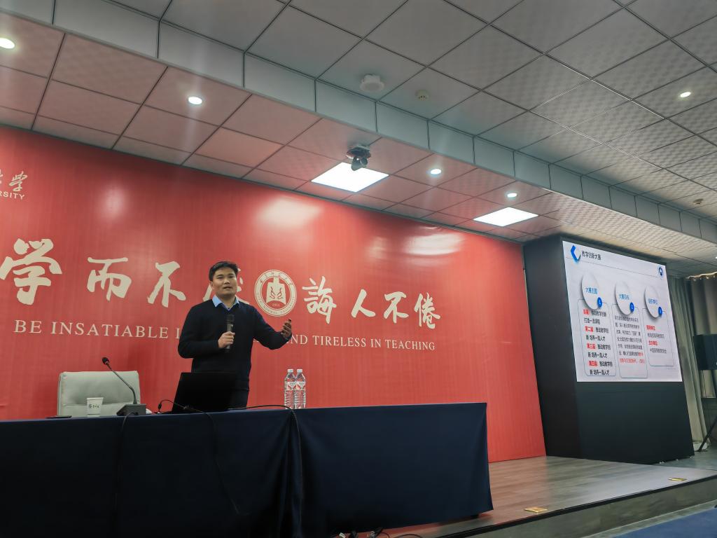 毕继东教授是全国第三届教师教学创新大赛一等奖获得者,两门国家一流课程的主持人,对于课程建设、教学创新具有深刻地理解与洞见。本次报告,他结合自己多年潜心教学的工作经历,详细介绍了如何深入解读课程目标,如何基于课程特点与学情分析进行教学设计创新以及跨学科内容融合、线上线下资源结合,如何探索多元的教学评价方式以取得更好的教学效果,为全体教师带来了一场精彩的教学学术思想盛宴。报告结束后,毕教授与部分教师进行了深入交流,解答了教师们在教学创新过程中的难题与困惑。