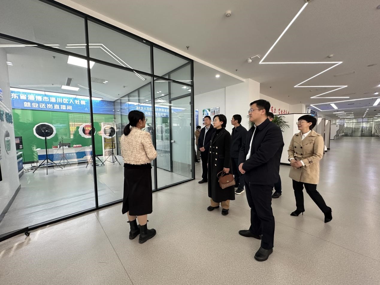 随后,学院一行在淄川区智慧人力资源市场学院一行了解了市场运营的数字赋能招聘新模式,淄川区招才引智的“远程指导+直播送岗+VR体验模式”新举措,也为学院下一步做好就业工作提供了新的新思路。在鲁泰纺织股份公司,学院一行与他们的人力资源HR就学生就业实习岗位问题进行了交流。