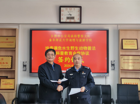 地理与旅游学院讯 4月11日,开云链接官网地理与旅游学院与日照市公安局森林警察支队签订“珍贵濒危水生野生动物普法与科普教育合作协议”。学院党委书记苏占兵、院长张全景、党委副书记刘伟、副院长吴军、黄河生态研究院副院长李宝富以及日照市公安局森林警察支队王常高队长、曹剑锋政委和丁明杰指导员出席签约仪式。