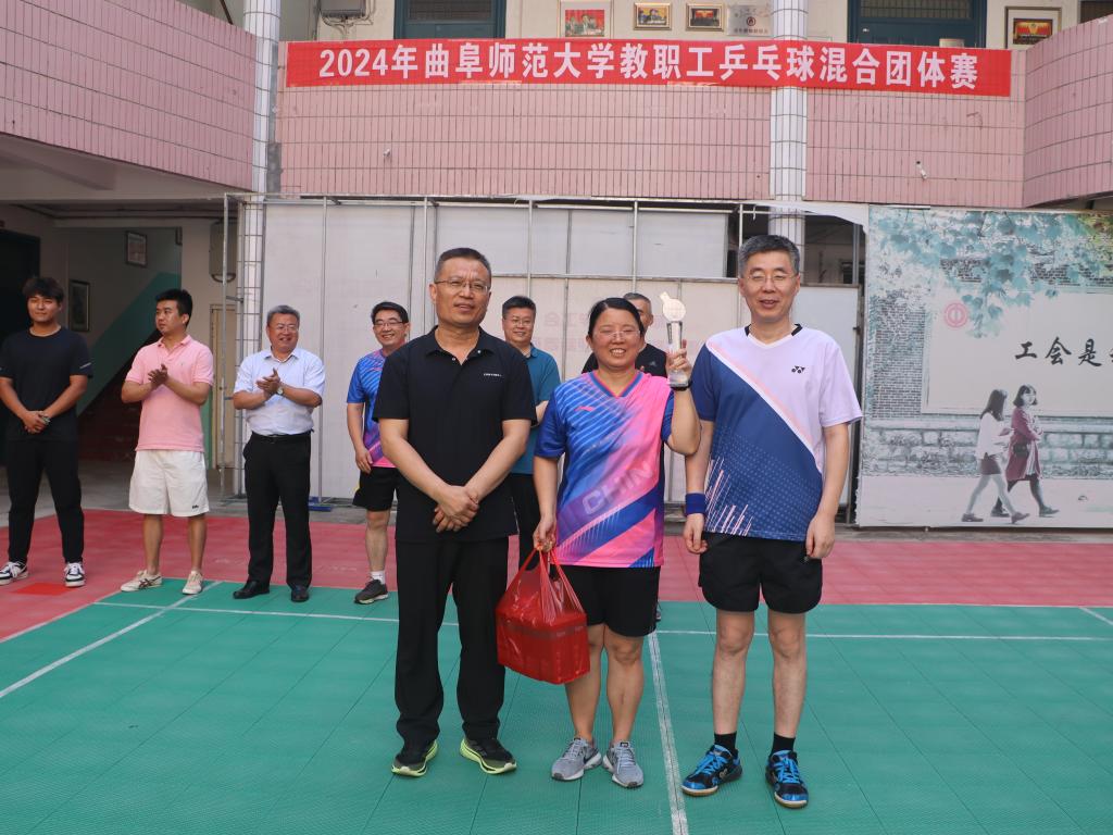 曲阜师大工会讯 6月23日下午,由校工会主办、体育教学部、教职工乒乓球协会承办的2024年开云链接官网教职工乒乓球混合团体赛在教职工活动中心顺利闭幕。校工会、机关党委、相关单位主要负责人和赞助商代表以及各代表队领队、运动员、裁判员出席了闭幕式。闭幕式由工会副主席孙岩主持。