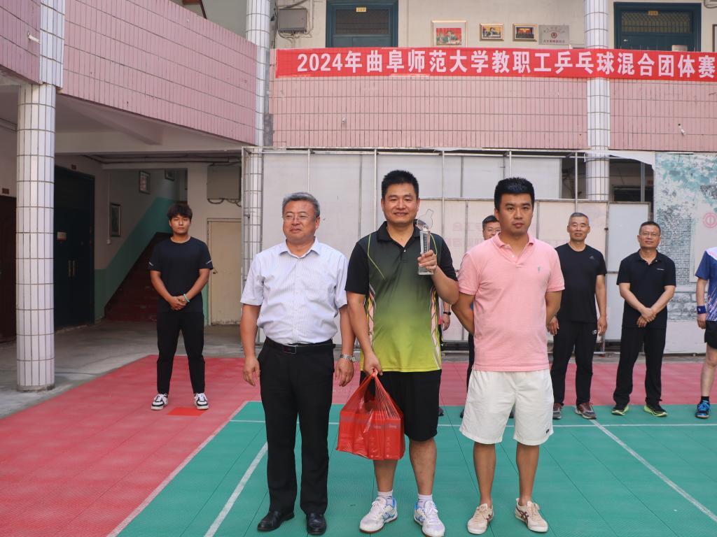 本次比赛秉承团结合作、勇于创新、拼搏进取、再立新功的宗旨,12支参赛代表队相互切磋、相互交流。从6月22日起,经过两天的激烈角逐,参赛队伍赛出了友谊,赛出了水平,展现了曲园人顽强拼搏、奋勇争先的风采和积极向上、不断进取的精神风貌。闭幕式上,裁判长刘成宣读了比赛成绩。图书馆、历史文化学院、化学与化工学院、后勤基建、网络空间安全学院、机关党委、生命科学学院、美术与书法学院依次获得第一名至第八名。机关党委书记刘建新为参赛队伍颁发纪念品,图书馆馆长王东波、美术与书法学院党委书记王慕东、化学与化工学院党委书记赵琪、体育教学部副主任李思民、曲阜千艺轩木工坊经理张亚轩、亚飞乒乓球俱乐部总经理王亚飞为前三名代表队颁发奖杯和纪念品。工会主席廖志强在闭幕词中代表工会向各参赛队和相关部门表示诚挚的感谢。
