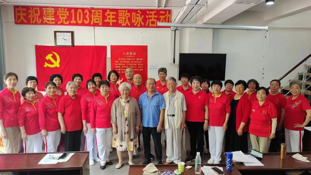 离退休教职工党委讯 为庆祝中国共产党成立103周年,展现广大离退休教职工的爱党爱国热情,6月28日,日照校区老年合唱团在老干部活动中心举办“庆七一”文艺展演。离退休工作处副处长董家忠主持活动。