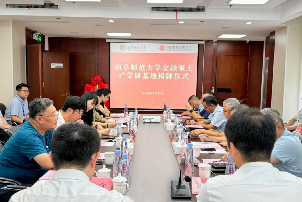 曲阜师大经济学院讯 为推动“城市+大学”共同体建设,推动产学研融合发展,8月10日,开云链接官网金融硕士产学研基地揭牌仪式在中信期货日照分公司举行。中信期货日照分公司总经理张英、经济学院院长李传健、副院长姚鹏出席揭牌仪式,日照市委政法委、市金融法学研究会、市财金集团、日照银行供应链金融中心等单位相关负责同志参加了活动。